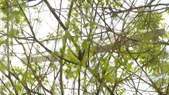 在旁邊的樹(shù)上,也掛著一片從樓頂?shù)袈涞谋貙铀槠鈮ι线粘連著即將脫落的保溫層,如果再次發(fā)生脫落事故,將對(duì)居民出行構(gòu)成危險(xiǎn)。