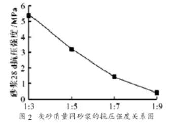灰砂質(zhì)量同砂漿的抗壓強(qiáng)度之間的關(guān)系如圖2所示。