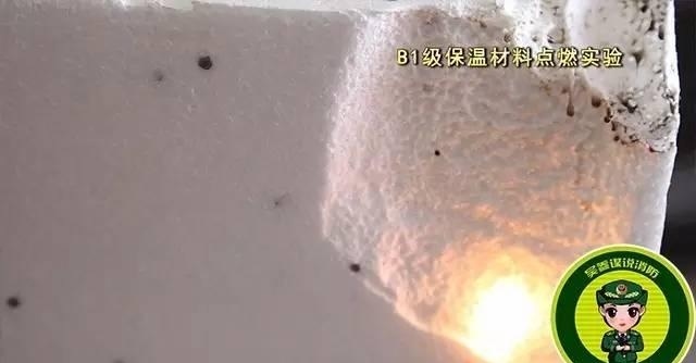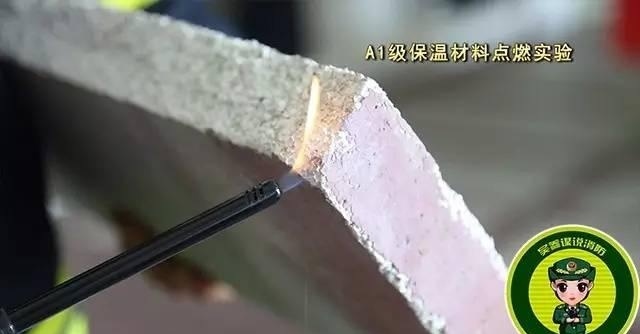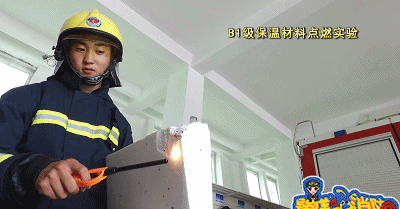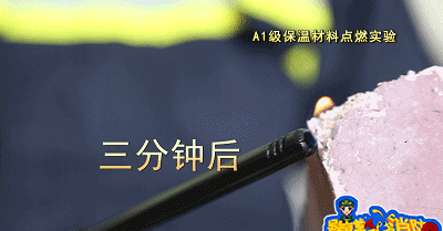 點(diǎn)燃A級保溫材料,保溫材料沒有出現(xiàn)一點(diǎn)要被點(diǎn)燃的跡象,持續(xù)三分鐘后,保溫材料依然沒有被點(diǎn)燃,但有顆粒狀物體掉落。