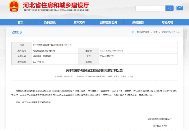 關(guān)于發(fā)布外墻保溫工程系列標(biāo)準(zhǔn)修訂的公告