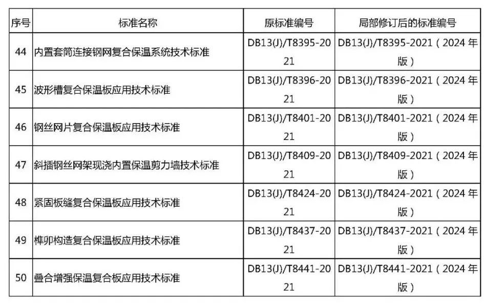 根據(jù)現(xiàn)行國(guó)家強(qiáng)制性工程建設(shè)規(guī)范和《河北省民用建筑外墻外保溫工程統(tǒng)一技術(shù)措施》(冀建質(zhì)安〔2021〕4號(hào))的要求,對(duì)50項(xiàng)外墻保溫工程系列標(biāo)準(zhǔn)(見附件)進(jìn)行了修訂。本次修訂的外墻保溫工程系列標(biāo)準(zhǔn)已經(jīng)本機(jī)關(guān)審查并批準(zhǔn)為河北省工程建設(shè)地方標(biāo)準(zhǔn),現(xiàn)予發(fā)布,自2024年5月1日起實(shí)施,原標(biāo)準(zhǔn)同時(shí)廢止。