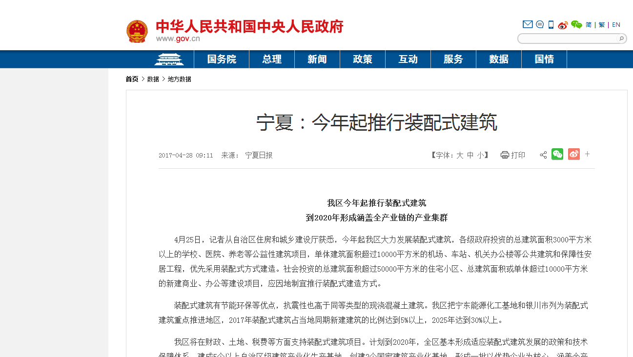 裝配式建筑有節(jié)能環(huán)保等優(yōu)點(diǎn),抗震性也高于同等類型的現(xiàn)澆混凝土建筑。我區(qū)把寧東能源化工基地和銀川市列為裝配式建筑重點(diǎn)推進(jìn)地區(qū),2017年裝配式建筑占當(dāng)?shù)赝谛陆ńㄖ谋壤_(dá)到5%以上,2025年達(dá)到30%以上。