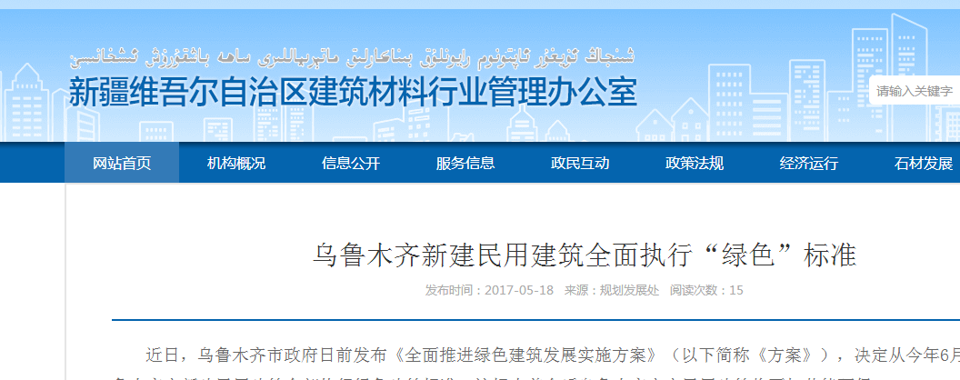 《方案》還規(guī)定,烏魯木齊市發(fā)改、建設(shè)等部門要把綠色建筑發(fā)展任務(wù)和執(zhí)行情況納入烏魯木齊市建設(shè)領(lǐng)域節(jié)能減排考核體系。